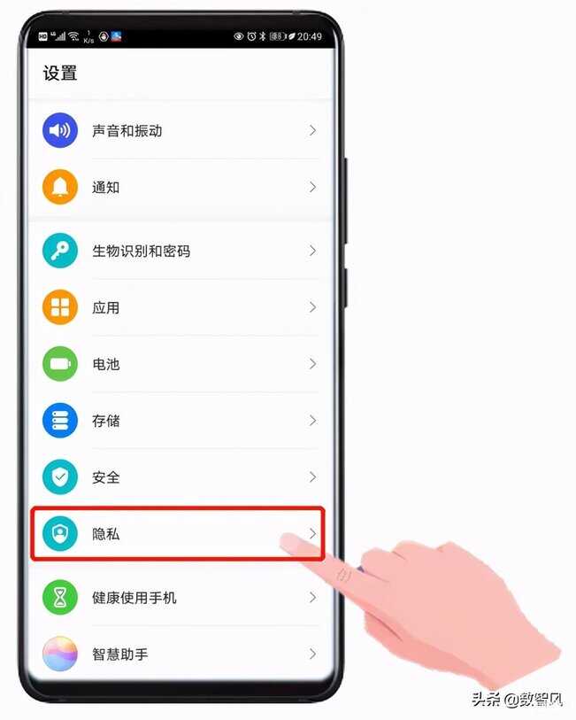 2、打开手机设置页面,找到“隐私”选项,点击进入。