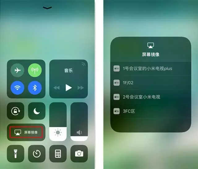 小米电视完美支持苹果iOS自带的屏幕镜像功能。手指从屏幕下方向上拖拽,拉出出控制中心,点击“屏幕镜像”(Screen Mirroring),然后选择你想要投屏的小米电视,就完成啦~