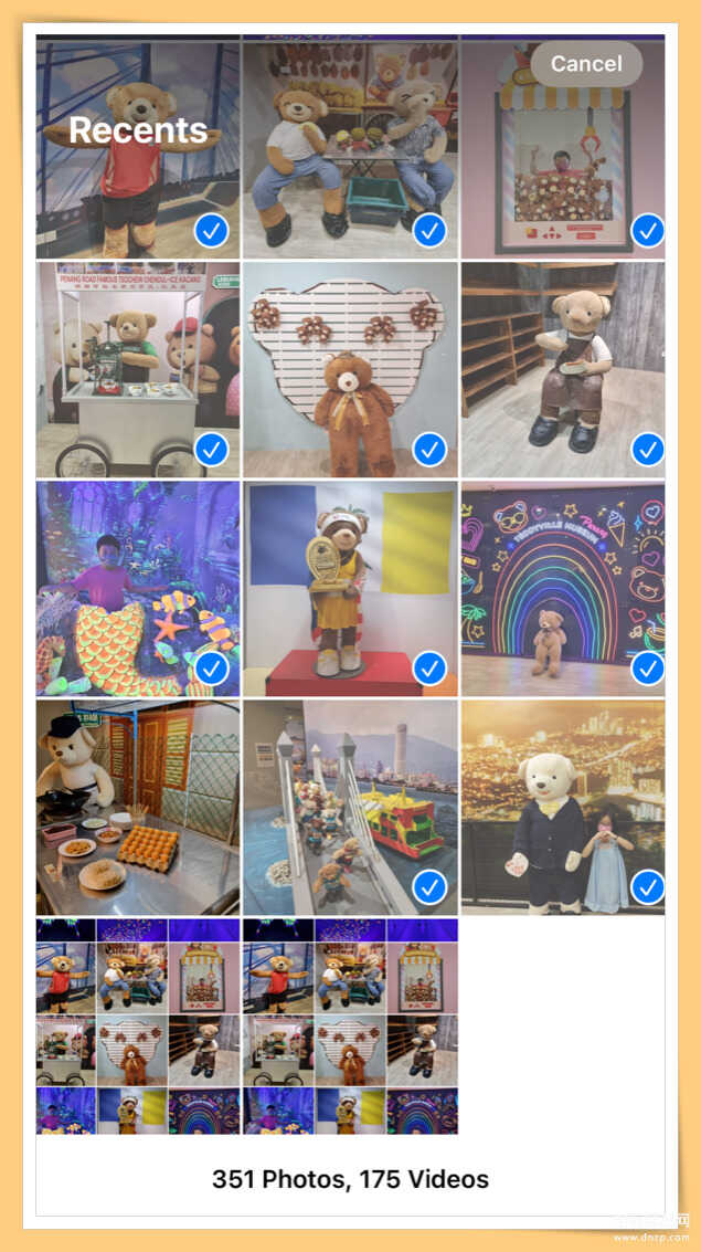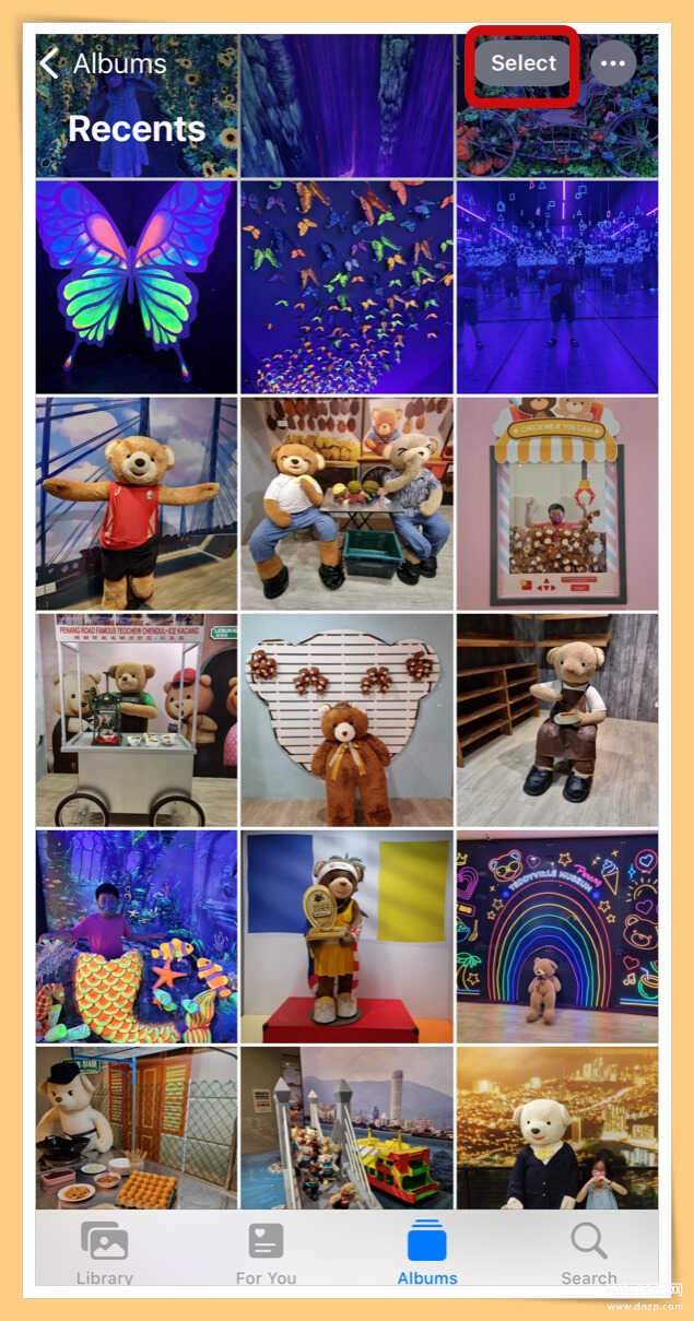 ✅步骤2:点选右上角“Select”按钮,将要分享的照片一起选起来