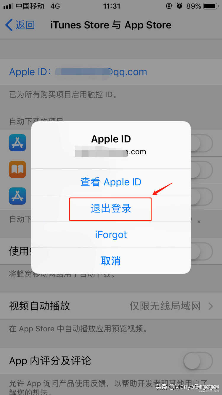 4、 点击最上面的”Apple ID“,把原来的ID退出,点”退出登录“