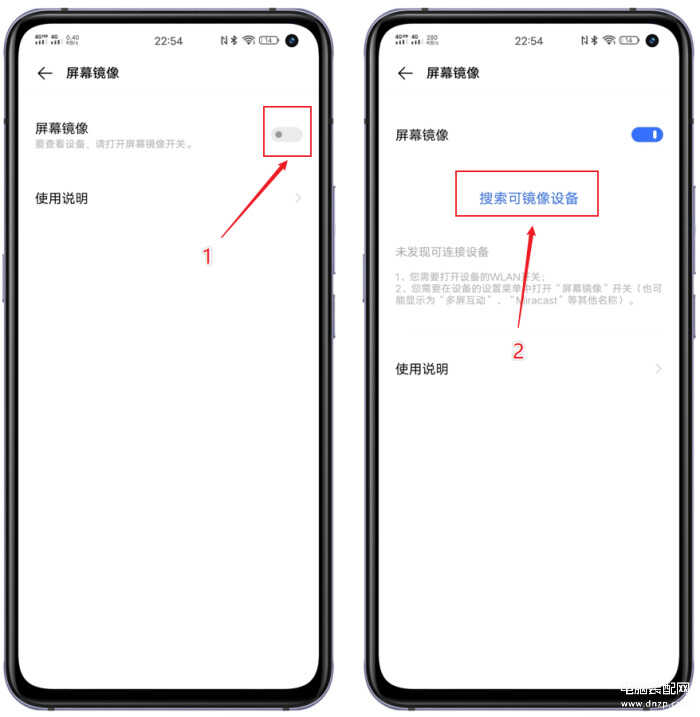然后打开【屏幕镜像】,点击【搜索可镜像设备】,然后点击设备即可实现投屏。