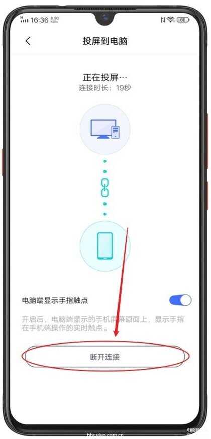 投屏成功后如果你想结束投屏的话,点击vivo互传投屏界面的“断开连接”即可。
