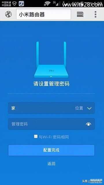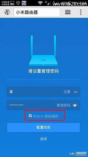 也可以勾选下面的“与Wi-Fi密码相同”的选项,即把WiFi密码作为管理密码。——>点击“配置完成”。