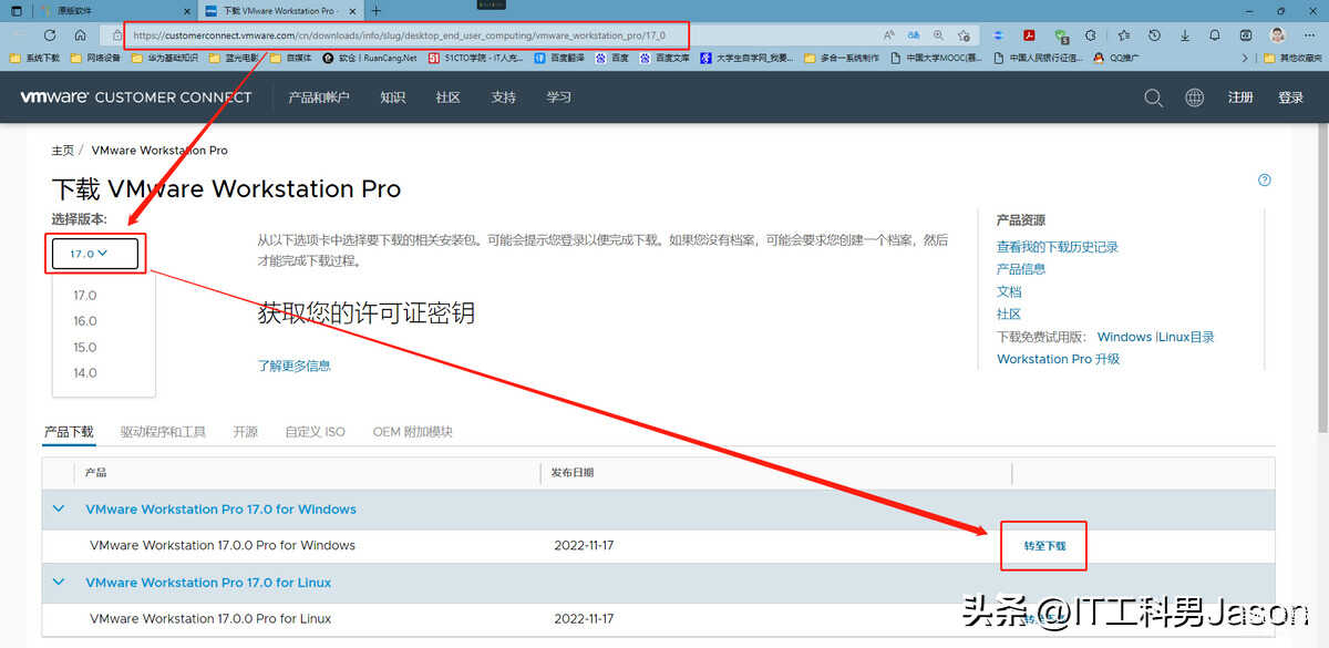(2)虚拟机下载:下载 VMware Workstation Pro - VMware Customer Connect