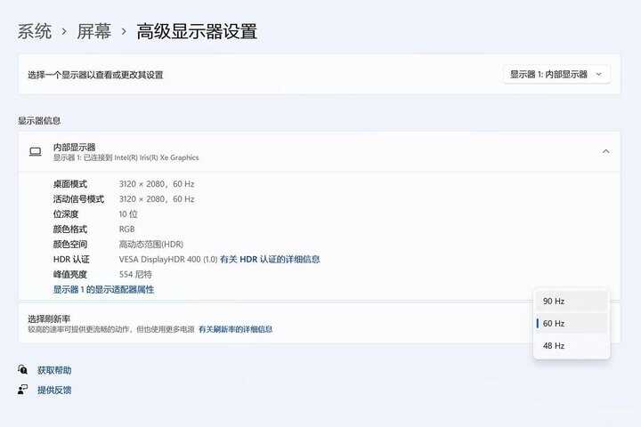 这块屏幕分辨率达到了3120×2080,支持60Hz和90Hz两档刷新率,并且具备高达96%的DCI-P3色域,能够把色彩显示调校到更精准的水平。并且华为对于每一台出厂的笔记本都做了校色,500nits亮度和1500:1的对比度也几乎是笔记本屏幕的天花板级别。