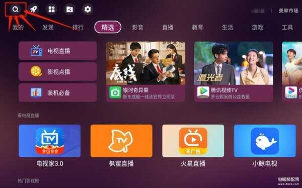 现在的智能电视都是没法看电视直播的,必须得安装软件,我的建议是安装美家市场,为啥呢?我看过目前市面上的应用市场,发现只有美家市场是有电视直播软件的,它专门有一个分区里面包含了非常多电视直播软件,比如电视家、火星直播、小鲸电视等等。