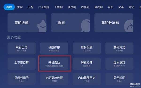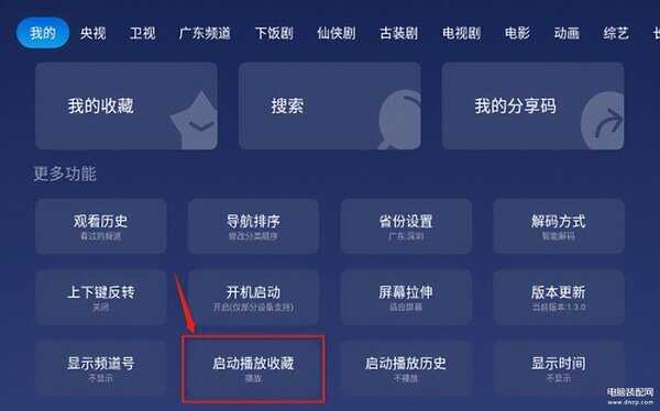 接着,点进一个央视频道将频道收藏,同样再随便收藏一个卫视频道,找到【我的】-【启动播放收藏】设置为【播放】,相当于下次打开APP直接播放收藏过的央视和卫视,换台按上下键就行,老操作。