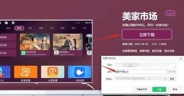 第一步:先准备一个U盘和一台电脑,然后将U盘插到电脑上,百度搜索“美家市场”,点击后进入它的官网,点击下载将官方包下载到U盘(建议改个安装包名称方便查找)