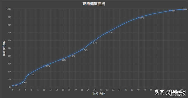从充电速度来看,vivo S12采用了常见的涓流充电保护技术,在前10分钟充电速度飞快,轻易就达到了30%电量,之后基本保持着1分钟2~3%电量的提升速度,但到了90%之后充电速度骤降,1分钟甚至是2分钟只能为电池充电1%,在55分钟时电量充满。