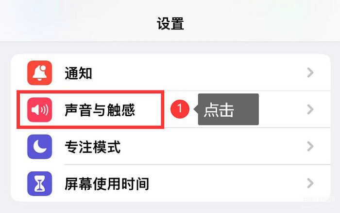 步骤2:进入【设置】界面后,在里面找到并点击【声音与触感】的选项。