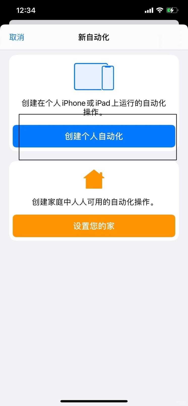 第一步: 打开快捷指令点击下面的自动化,创建个人自动化,