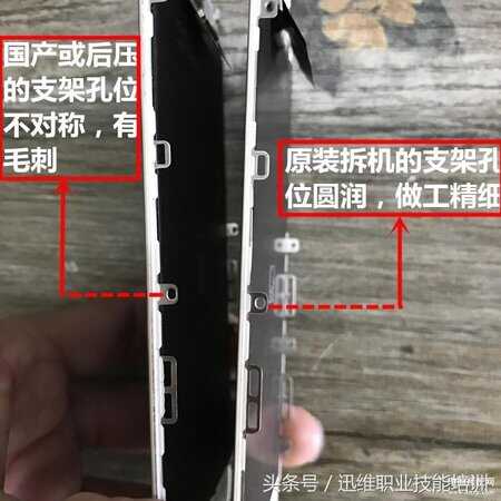 看下图可以轻松区分原拆屏和国产组装屏: