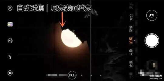如果靠手机自动对焦,月亮会呈现得像个“灯泡” 缺乏细节轮廓 ▼