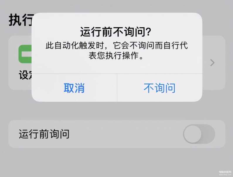 小提示:如果您开启了“运行前询问”,那么 iPhone 会弹出对话框询问您是否要开启低电量模式。也可以将“运行前询问”关闭,这样 iPhone 就会在断开电源时自动开启低电量模式,不需要您在对话框中确认。