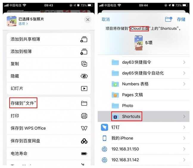 首先,将相册里选中的照片存储到文件App,iCloud-shortcuts目录下。