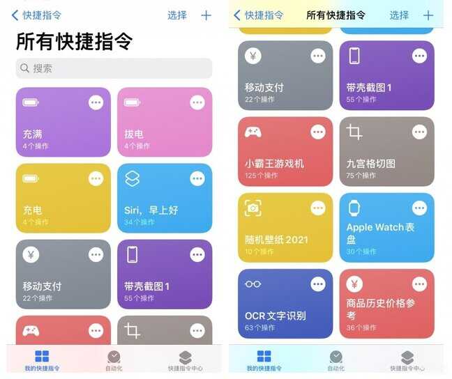 快捷指令的两类功能,一类就是平时见得比较多的快捷指令,另一类就是更有趣更强大的自动化。