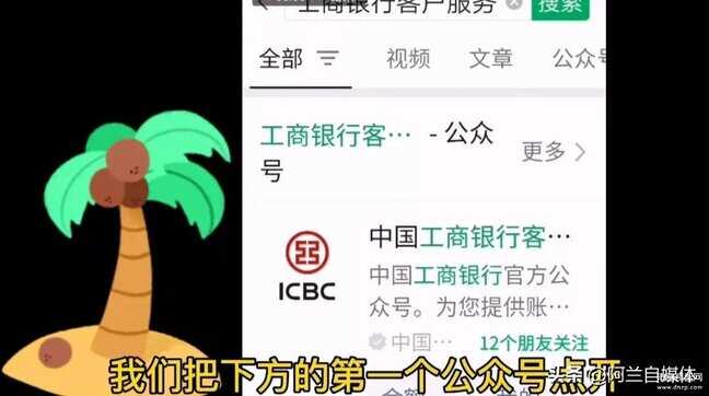 比如我的银行卡是工商银行的,我就在这里搜索工商银行的公众号,再点后方的“搜索”,立刻就出来了。