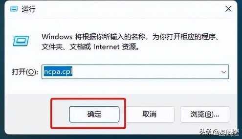 在打开的运行程序中输入:ncpa.cpl,点击确定。