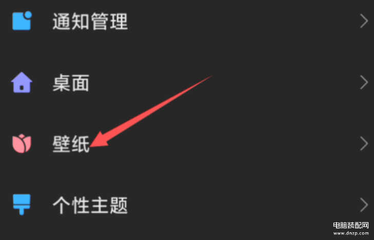 3、在“设置”界面,点击“壁纸”选项,进入“壁纸”的管理界面。