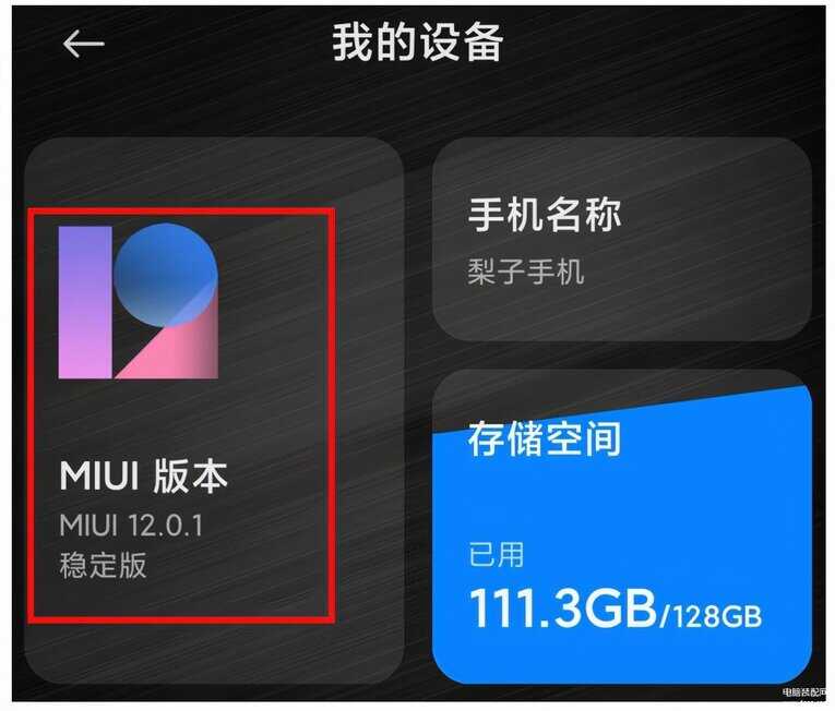 2、查看手机的系统版本,确认是否为MIUI12,如果不是,点击版本图标升级即可。