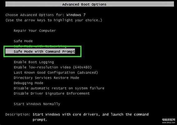 1.在计算机启动时按〔F8〕及选〔Safe Mode With Command Prompt〕