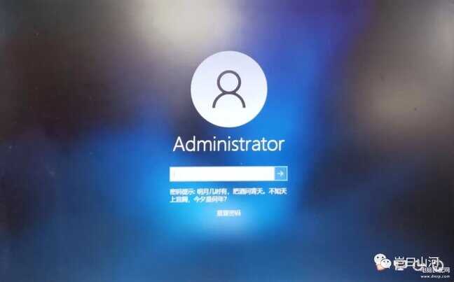 2.当登陆页面再次出现时,登录名就是“Adiministrator”,但是密码已经被注销为空,可直接登录打开电脑。