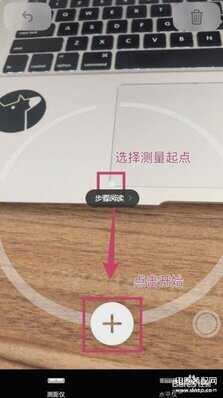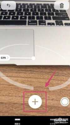 3、界面中会出现一个圆圈,中间有一个小圆点,将这个点对准你想要测量距离的物体的一端,然后点击【+】添加图标,这个点将作为测量的起点。