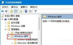 2、打开后,进入左上角管理模板下的“Windows组件”。
