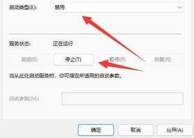 4、最后将启动类型改为“禁用”再点击下方“停止”即可。