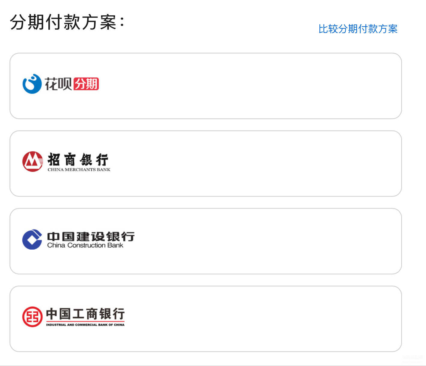 iPhone分期付款并不是必须使用信用卡。购买iPhone手机无论线上线下均可使用分期付款。其中线上苹果官网就支持花呗、招商银行、中国建设银行、中国工商银行四种分期渠道,没有信用卡或者不想使用信用卡用户可以选择花呗进行分期。