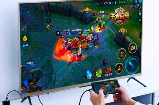 将Type-C接口插入手机端,转接线HDMI插入电视接口,把大屏显示设备的信号源,切换到对应接口,即可投屏成功。
