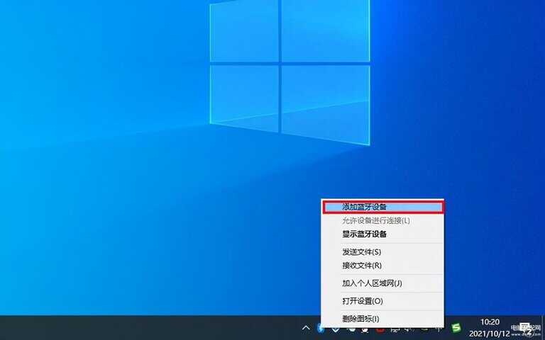 1、鼠标右键点击【蓝牙图标】,选择【添加蓝牙设备】选项;