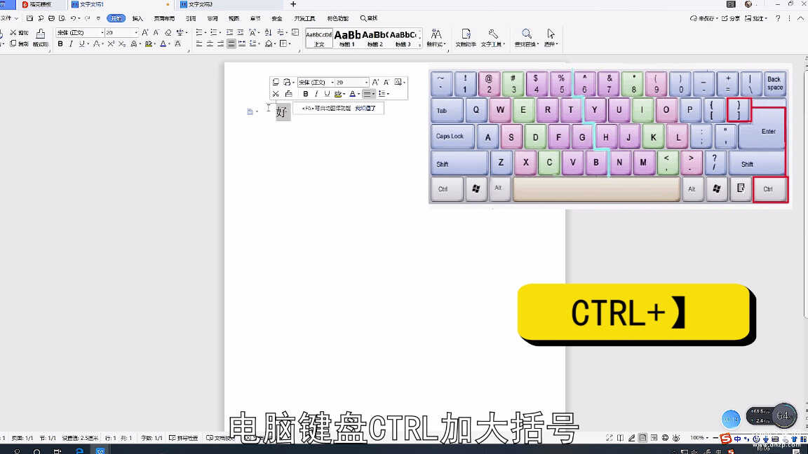 步骤②选中文字,同时点击CTRL+】,调整至需要大小。