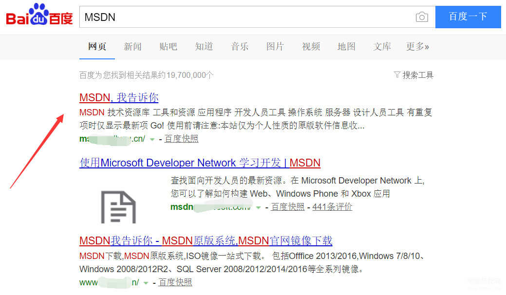 打开百度,在百度里面输入:“MSDN"点击搜索。