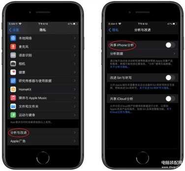 操作步骤:【设置】-【隐私】-【分析与改进】-【分享iPhone分析】。