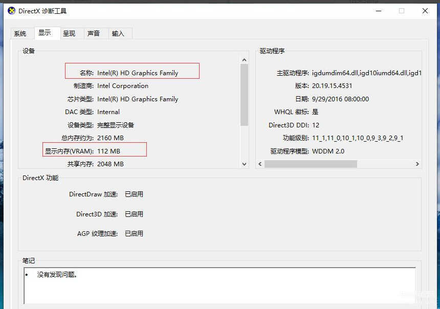 3、点击显示之后就可以看到集成显卡的型号了,如下图信息。