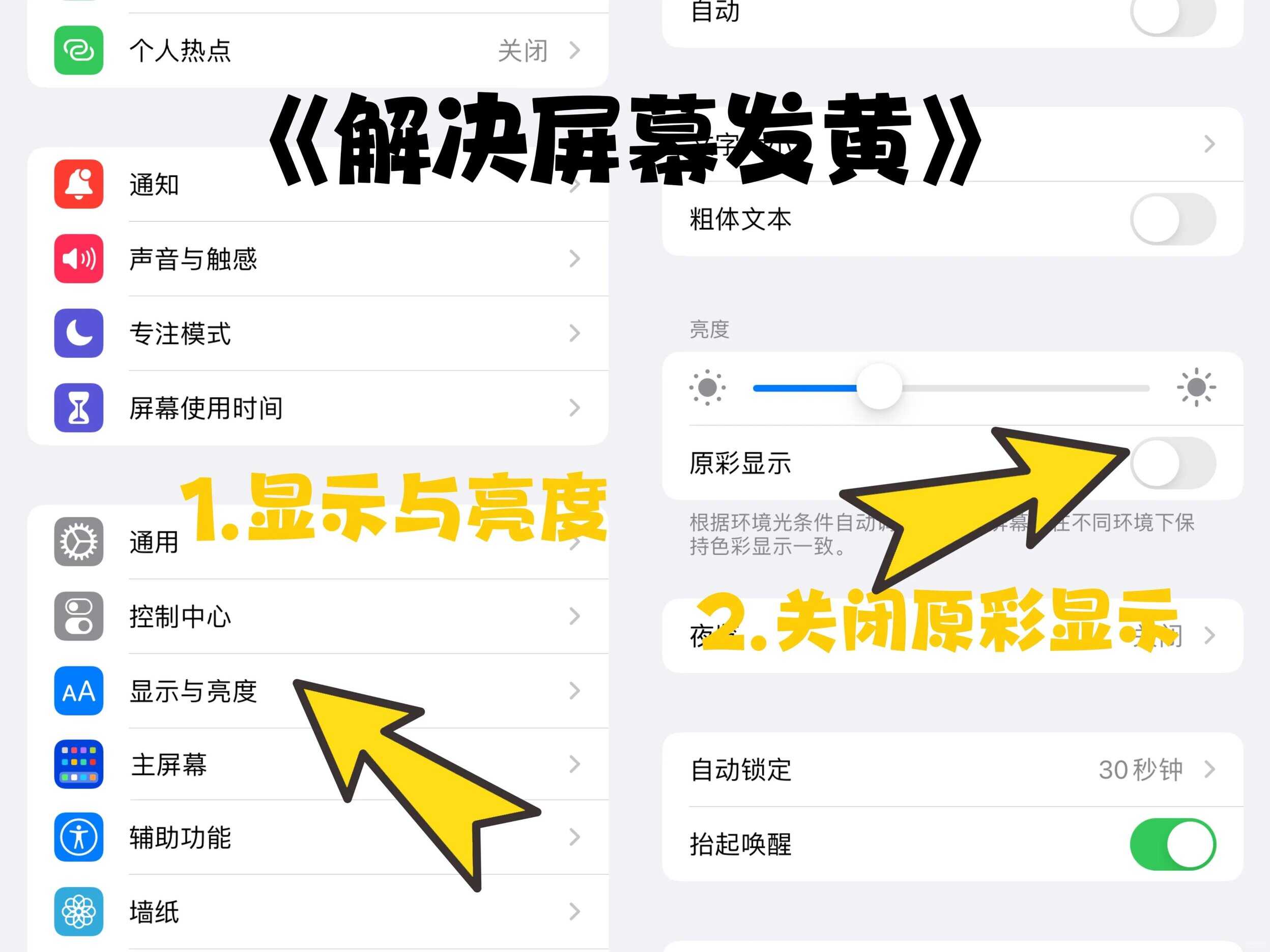 1⃣️设置-显示与亮度-关闭原彩显示(解决屏幕发黄的问题)