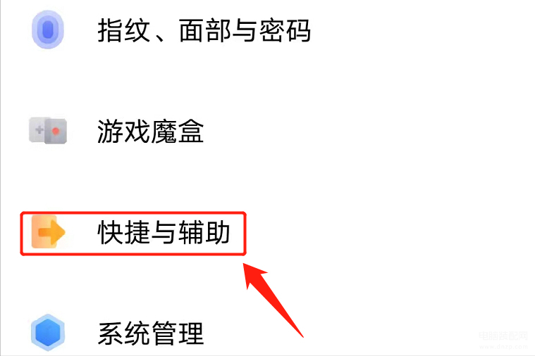 点击该图标进入设置选项以后,下拉菜单找到“快捷与辅助”选项。如下图: