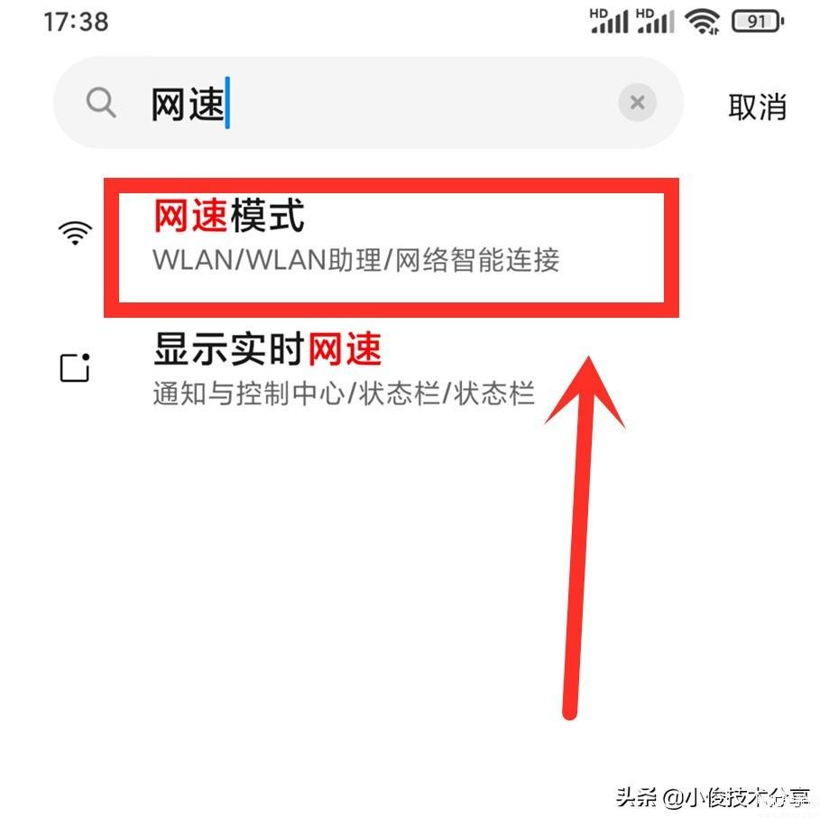 同样的方式,直接在设置搜索栏中输入【网速】