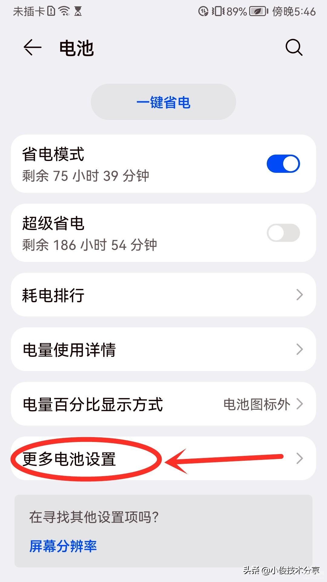 在【电池设置】中心,点击【更多电池设置】