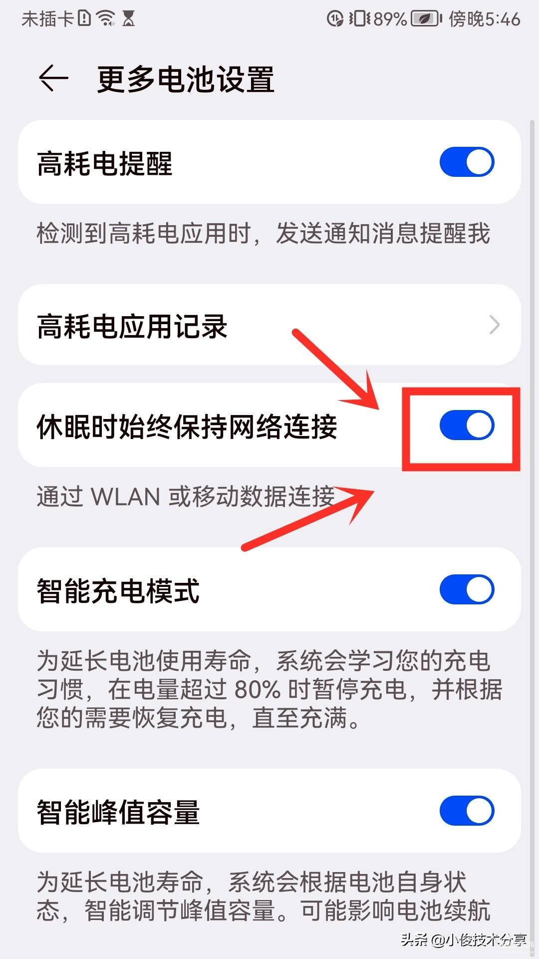 接下来直接把【休眠时始终保持网络连接】开关打开就行了!