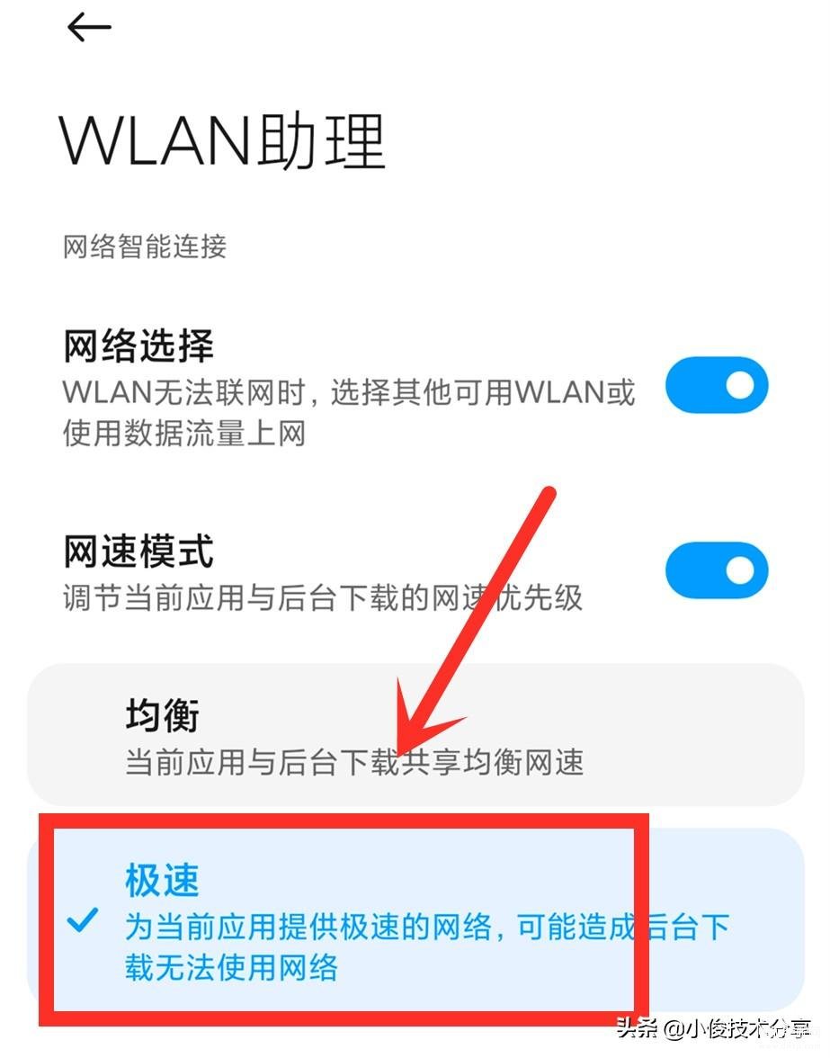 然后选择第一个【网速模式】,打开【网速模式】之后,就会出现菜单选项卡,在这里我们直接选择为【极速】模式