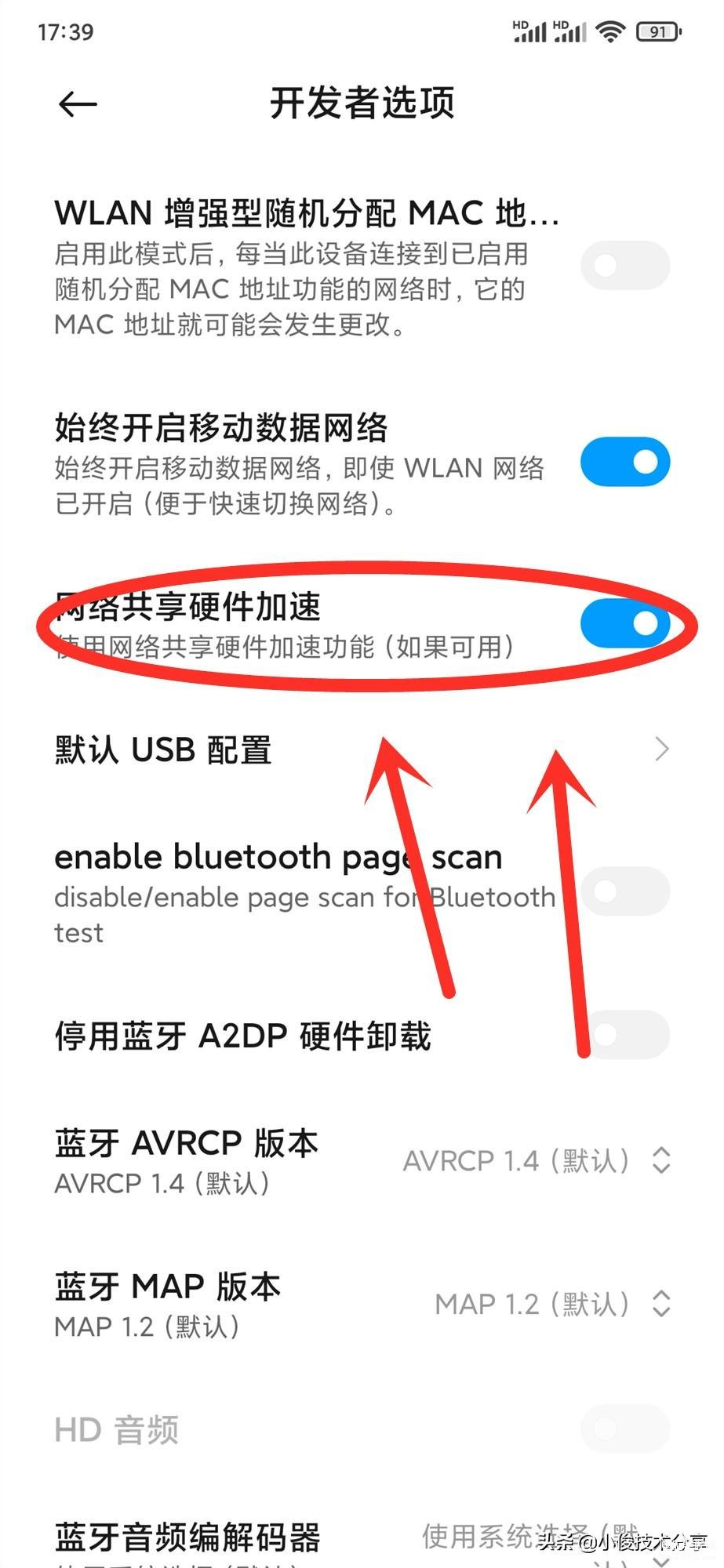在【更多设置】界面直接选择【开发者选项】,接着往下找到【网络共享硬件加速】,把这个开关打开就可以了!