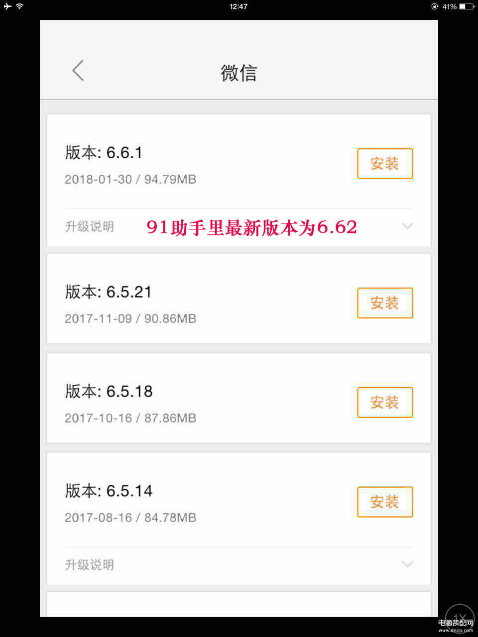 第三:打开91助手,搜微信,历史版本6.5.5(以上版本以655示例,其他请自测)直接安装打开,会跳过低版本弹窗。需多开的再去pp助手。再安装你玩的越狱类插件。