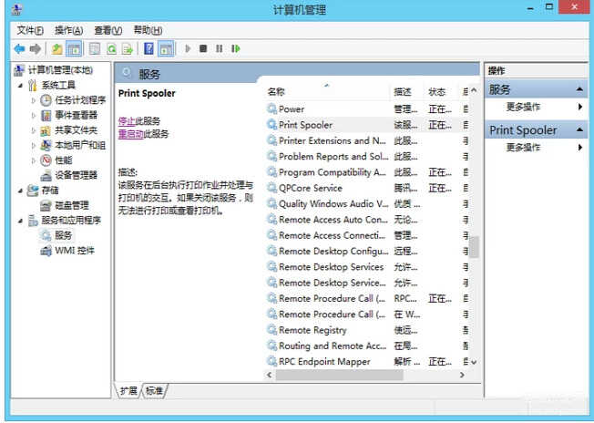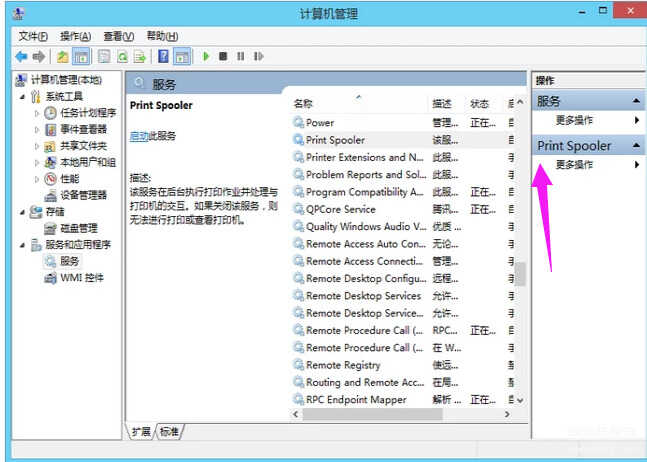 在服务列表中查找打印假脱机程序,然后单击开始此服务。