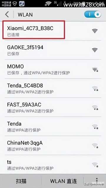 2、打开手机上的WLAN功能,搜索连接到小米路由器的无线信号,如下所示