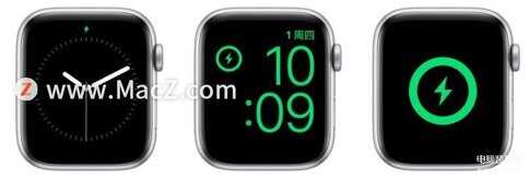 使用充电线将Apple Watch连接到电源后,您应该会在屏幕上看到一个绿色闪电图标。