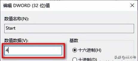 3、点击修改,把start值改成16进制,值改为“4”,然后点击「 确定 」保存数据,如图所示。