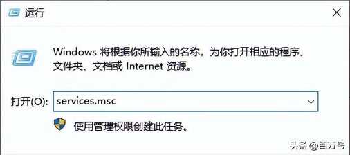 1、同时按下键盘 Win + R,打开运行对话框,然后输入命令 services.msc ,点击下方的“确定”打开服务,如下图所示。