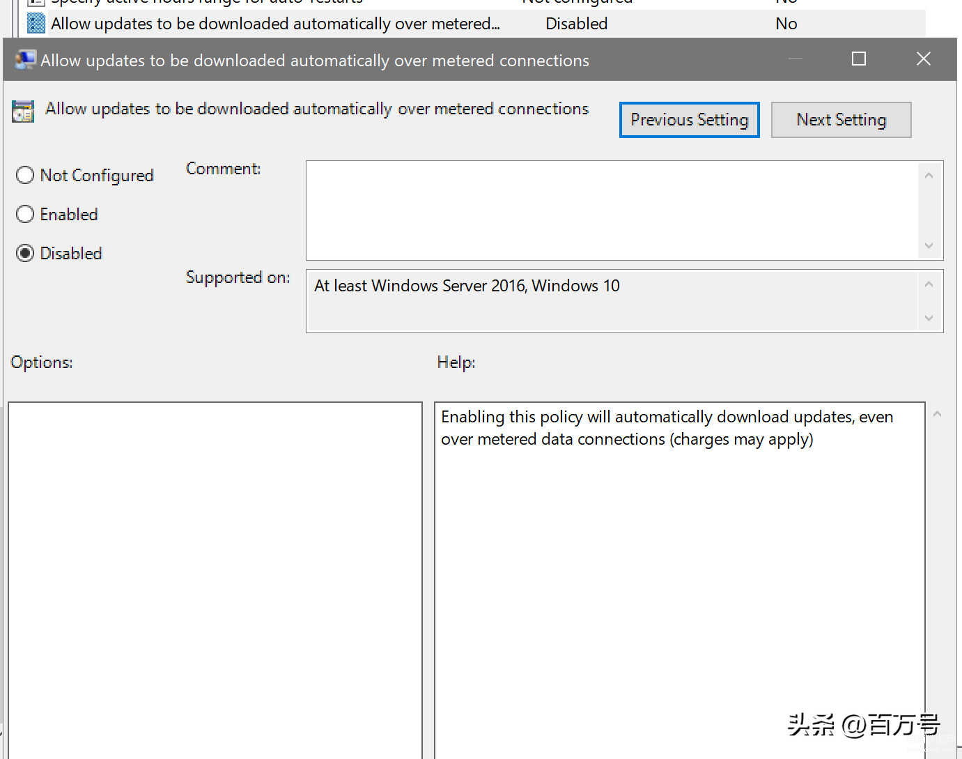 5.找到允许自动更新从metered 链接上自动下载更新,并设置为禁用。